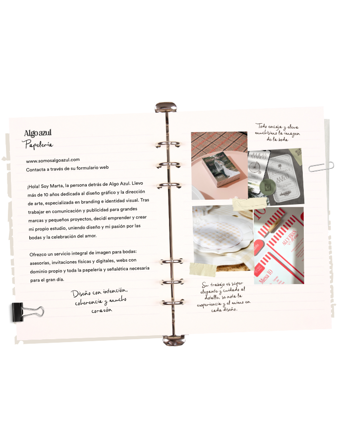 Aquí comparto contigo parte de mi agenda secreta de proveedores, te cuento mis trucos y claves a la hora de planificar bodas reales sin dramas, te enseño las webs de boda que diseñamos con cariño y, además, puedes escuchar mi podcast mientras sueñas con tu gran día.